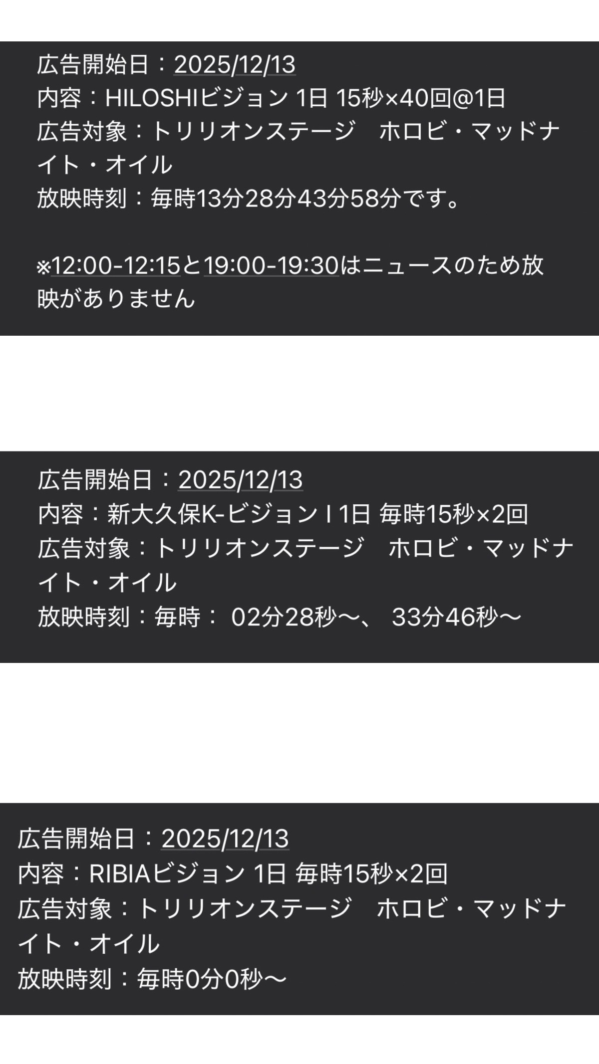 内容:新大久保K-ビジョン I 1日 毎時15秒×2回