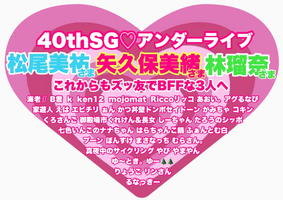 この度は林瑠奈ちゃん、矢久保美緒ちゃん、松尾美佑ちゃんのBFF祝花in40thアンダーライブ企画にご参加いただきありがとうございます。