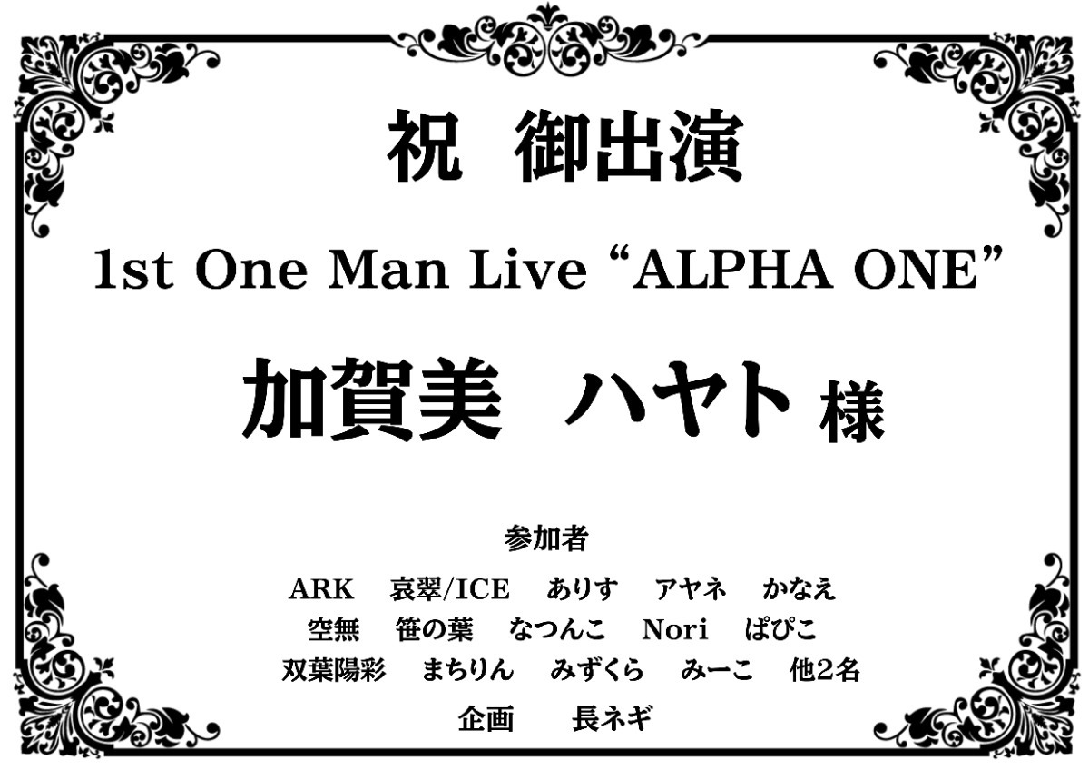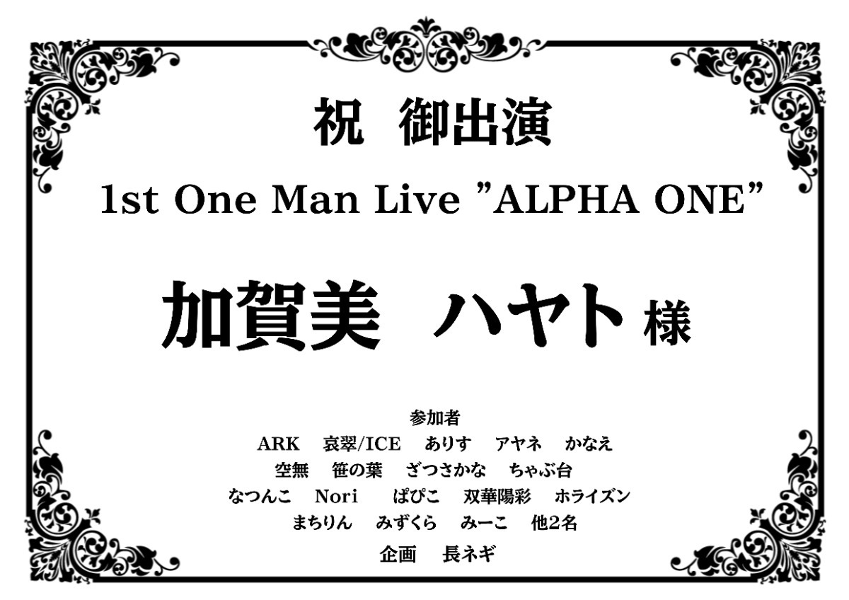 加賀美ハヤト 1st One Man Live ”ALPHA ONE”フラスタ企画