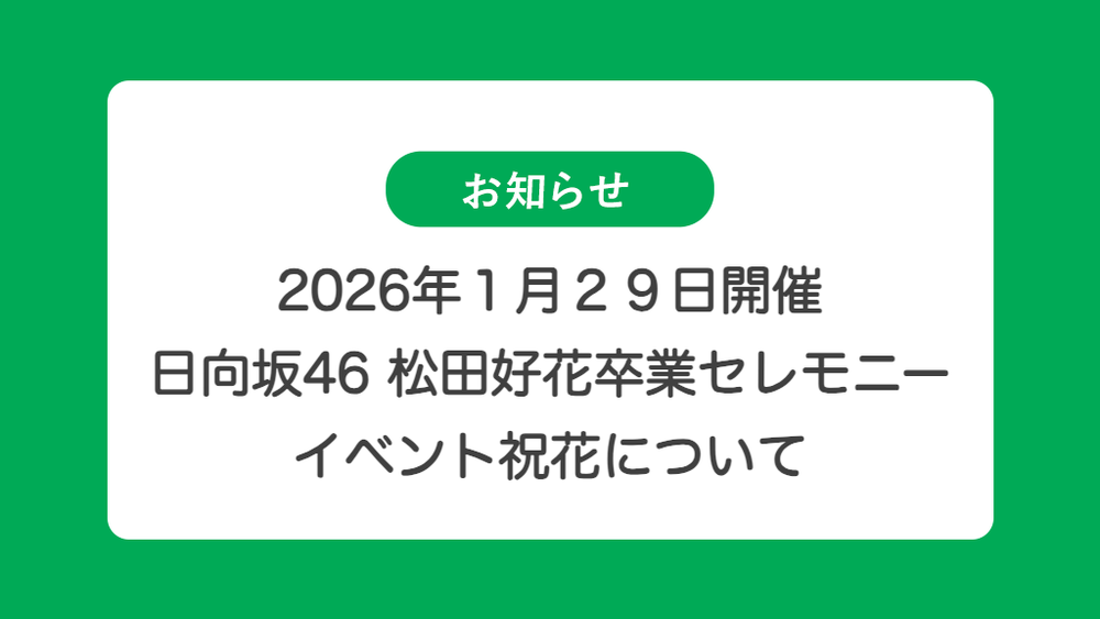 1月29日開催 日向坂46 松田好花卒業セレモニーの祝花(楽屋花・フラスタ/スタンド花)のお届けについて