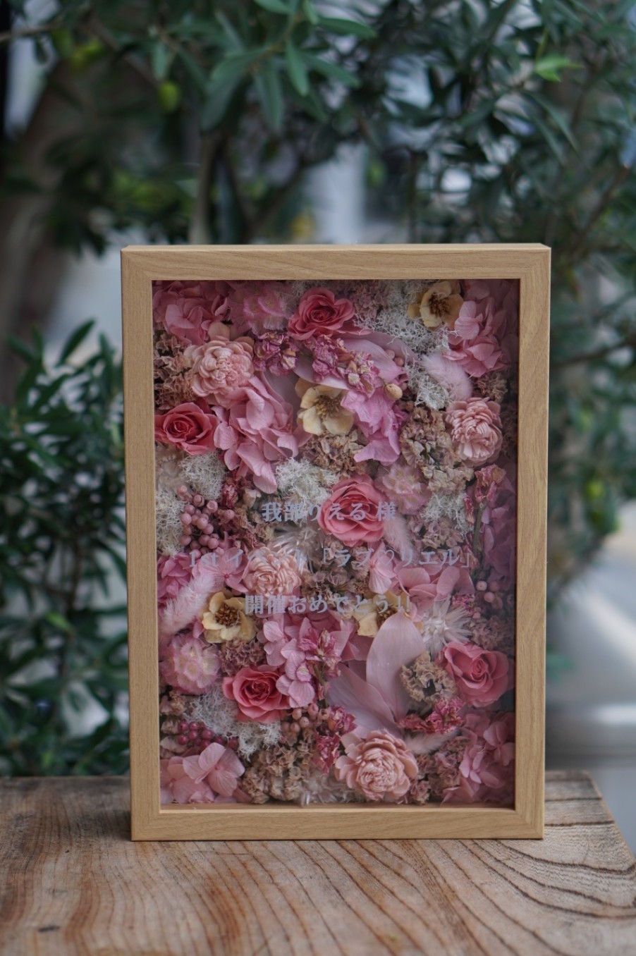 ガラスの文字の配置も素敵だしお花も素敵でした!