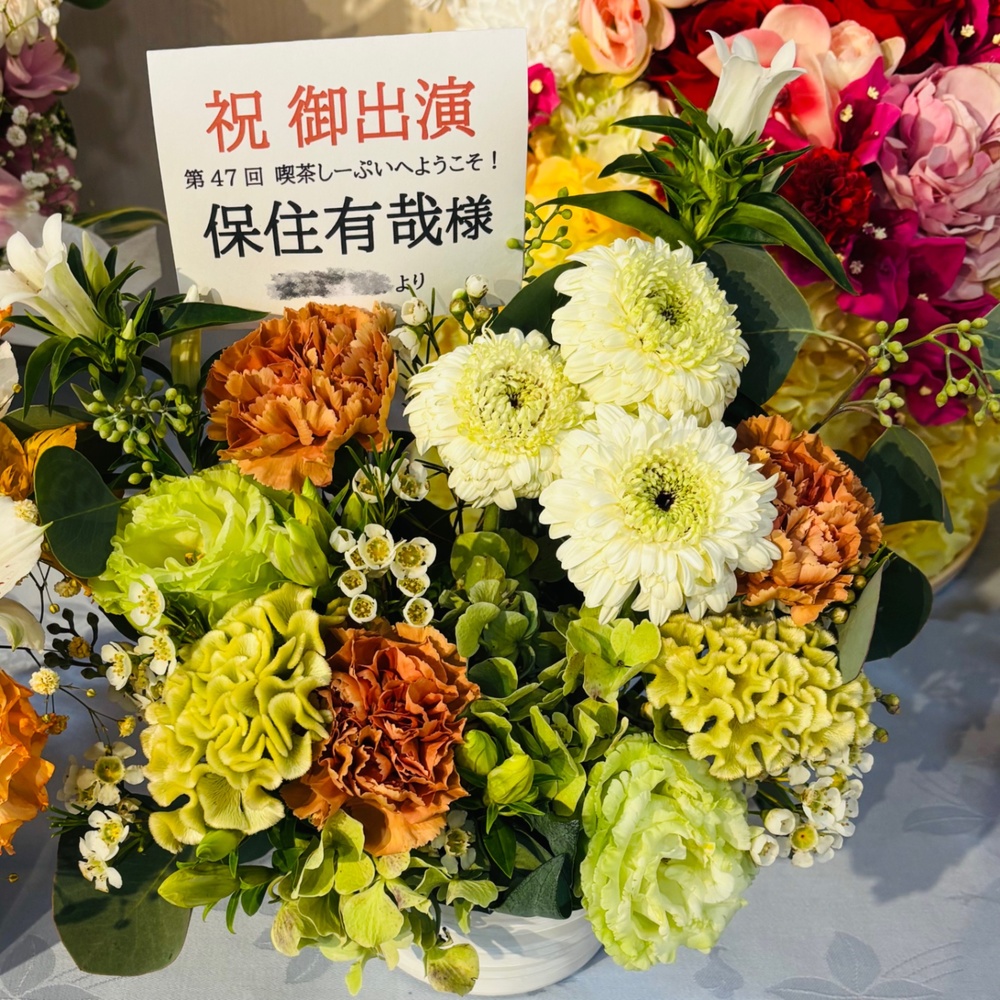 初めてフラスタ・楽屋花をお願いしたのですが、どういう形でお願いをしていいのかわからない中、短い期間で綺麗に可愛く仕上げてくださって、お相手にも喜んでもらえたので感謝しかないです