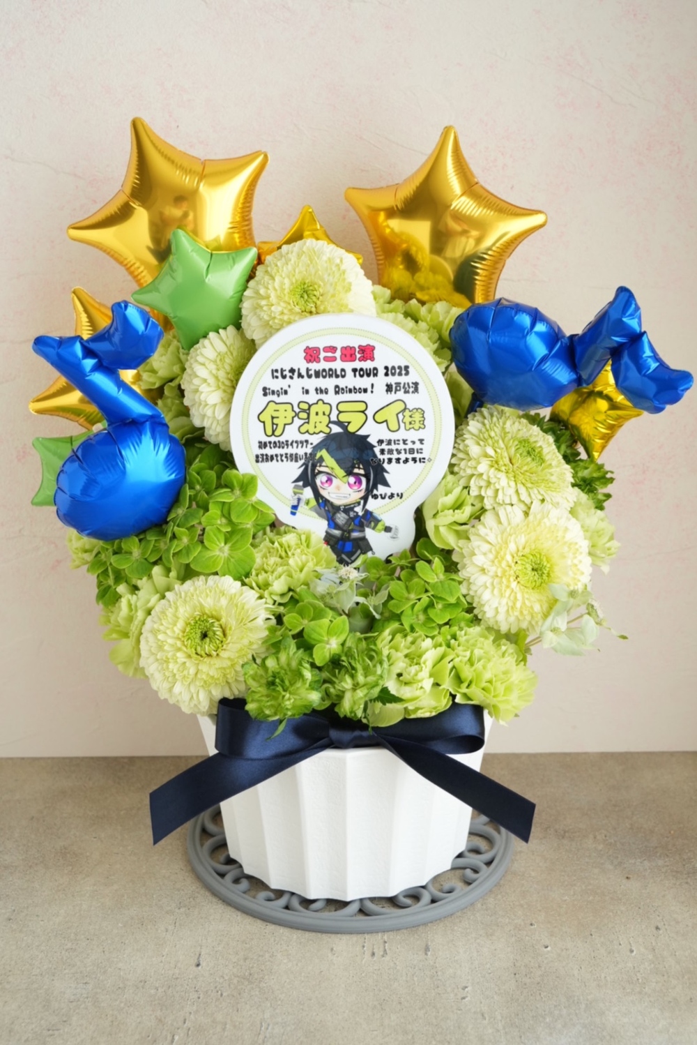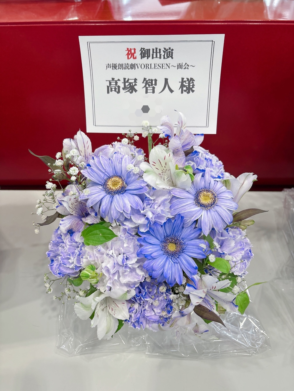 友人のLIVE出演にどうしてもスケジュールが合わず駆けつけることがかなわなかったので何としてもお祝いと励ましの気持ちを伝えたく注文させていただきました。