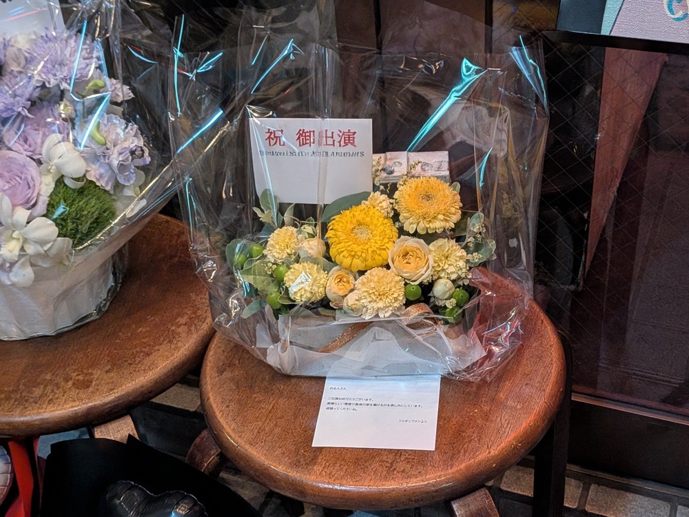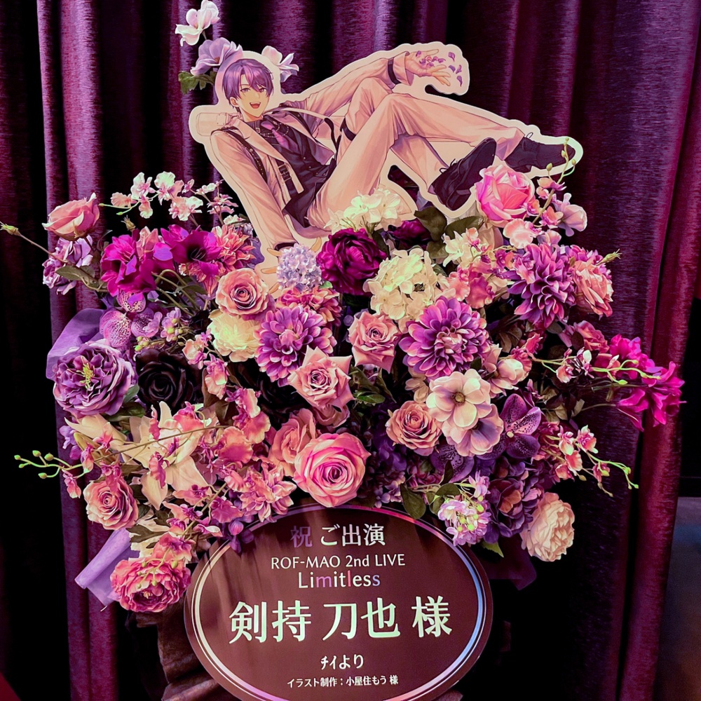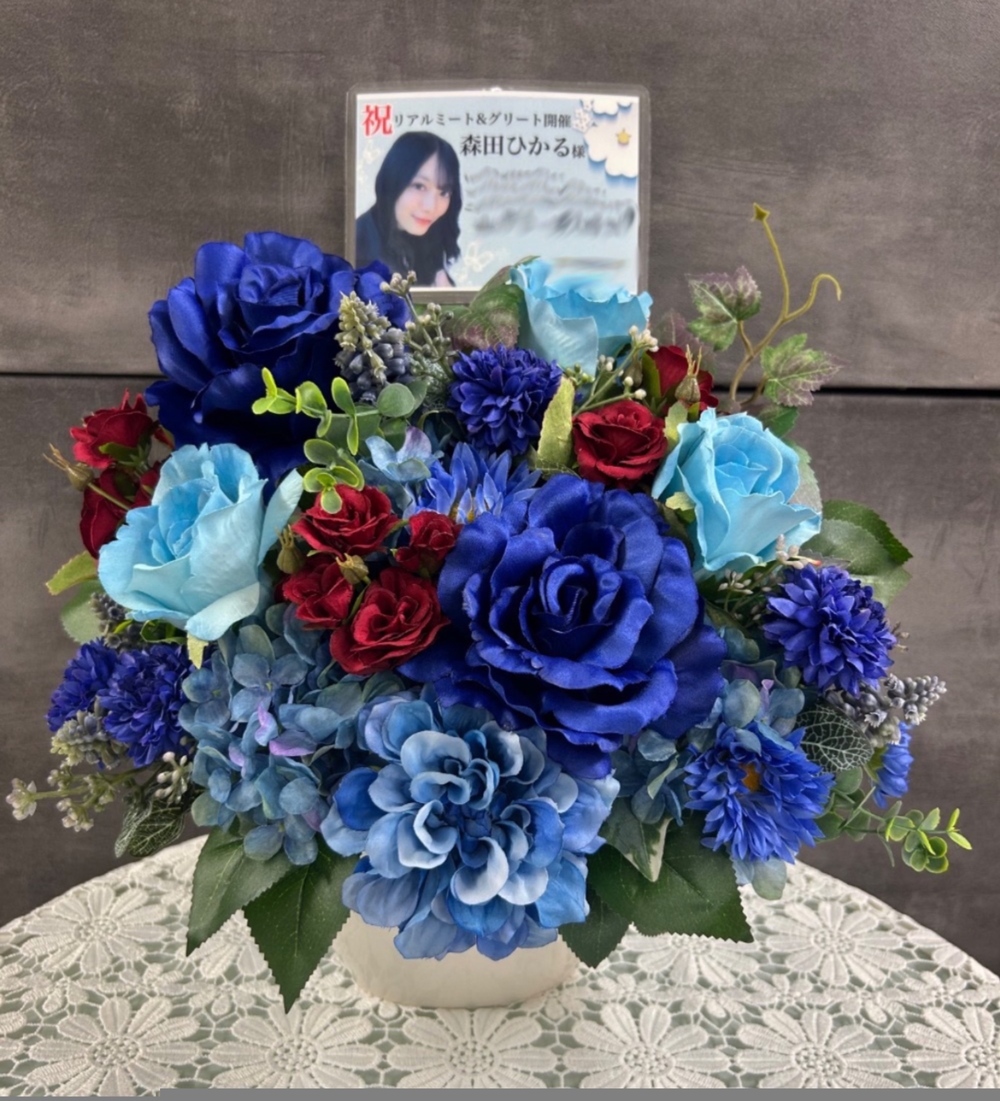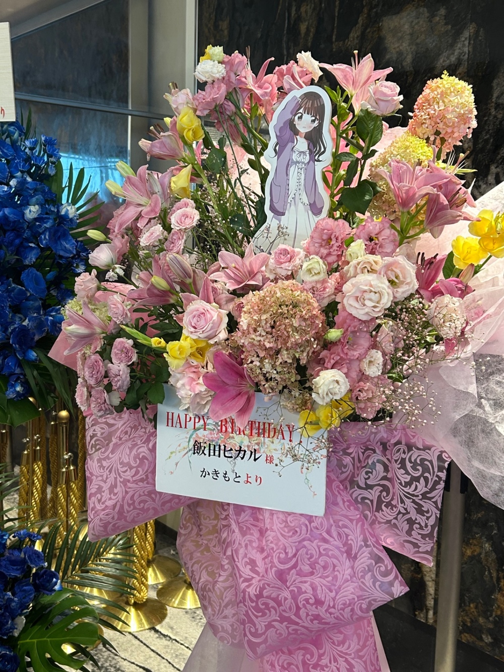 初めてのフラスタということで、イメージカラーのみの指定であとはお任せでお願いしましたが、とても素敵なフラスタに仕上げていただけたので。