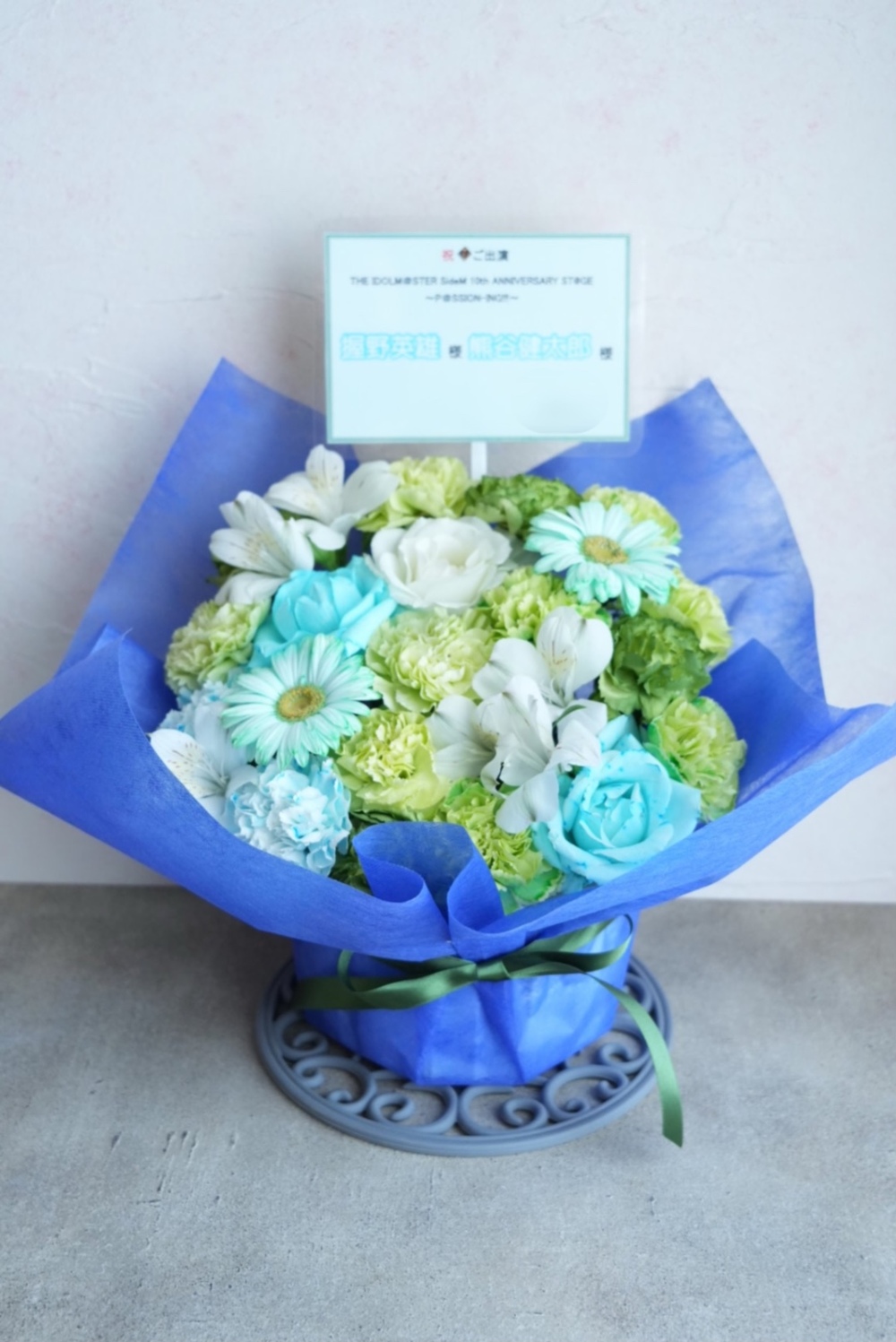 送り先である日向坂46の小坂菜緒さんと小西夏菜実さんのイメージカラーを取り入れつつ、バルーンや他の色のお花のおかげで華やかさがプラスされて凄く良かったです。