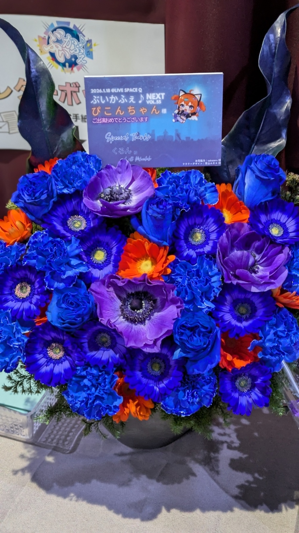 同系色で色味が微妙に違う程度の2色を一つの楽屋花で使用してほしいが、1色にまとめていただいても構わないとお伝えしていたところ、2色の違いを表現してくださっていて感激しました。