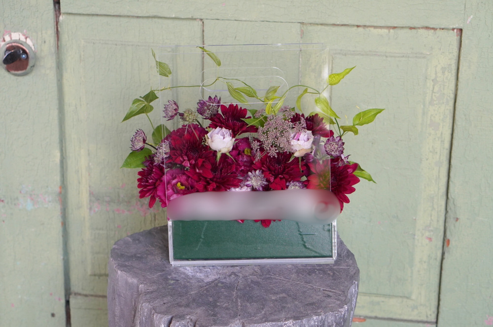 季節によって使用できるお花が異なるため、雰囲気が異なる場合があります。また、フラワーデザイナーが撮影した場所、角度によっても印象が異なることがあります。恐れ入りますが予めご了承ください。