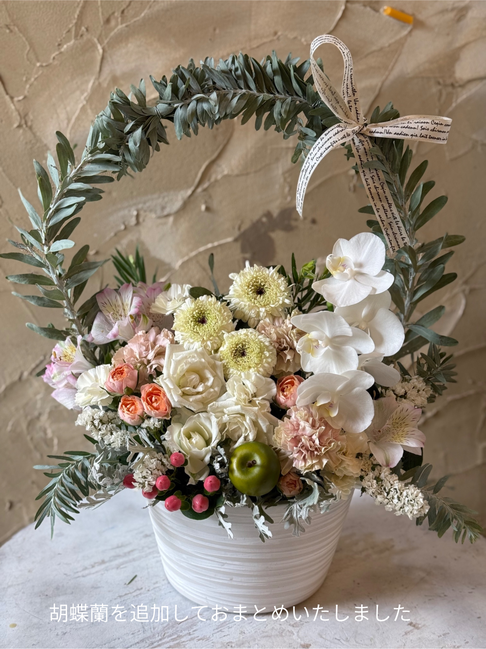 購入商品:アーチの生花アレンジ 白 S