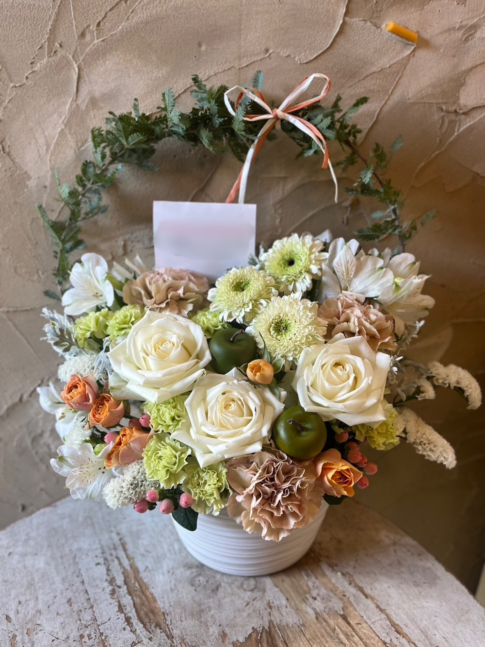 アーチの生花アレンジ 白ベージュ S