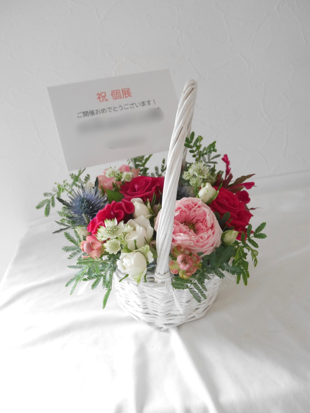 爽やかな白の取っ手付きのカゴにお花を敷き詰めたフラワーバスケットです。カゴいっぱいに摘んだお花入れたようなナチュラルなデザインに仕上げました。開店祝いや各種お祝いの贈り物としてもおすすめです。空間を明るく彩り、受け取る方へのお祝いの気持ちを、やさしく届けてくれます。