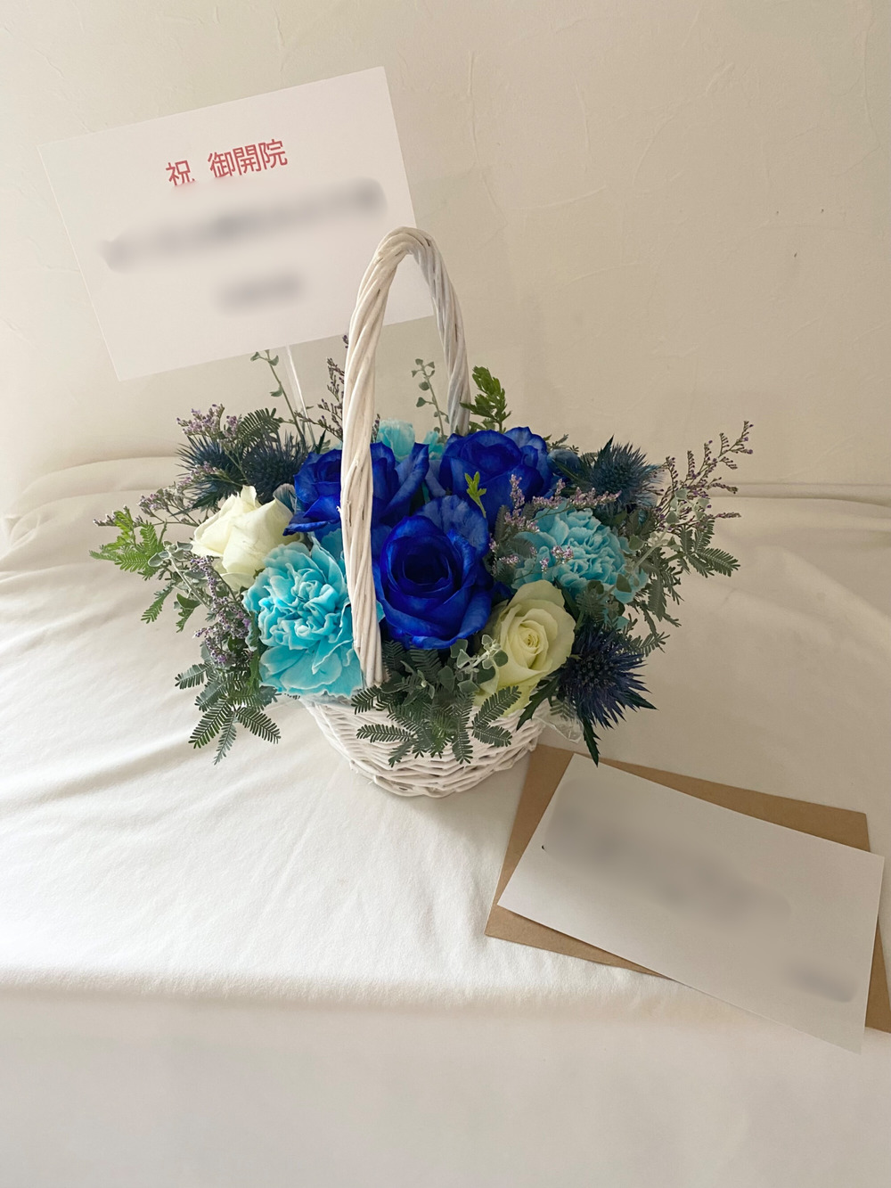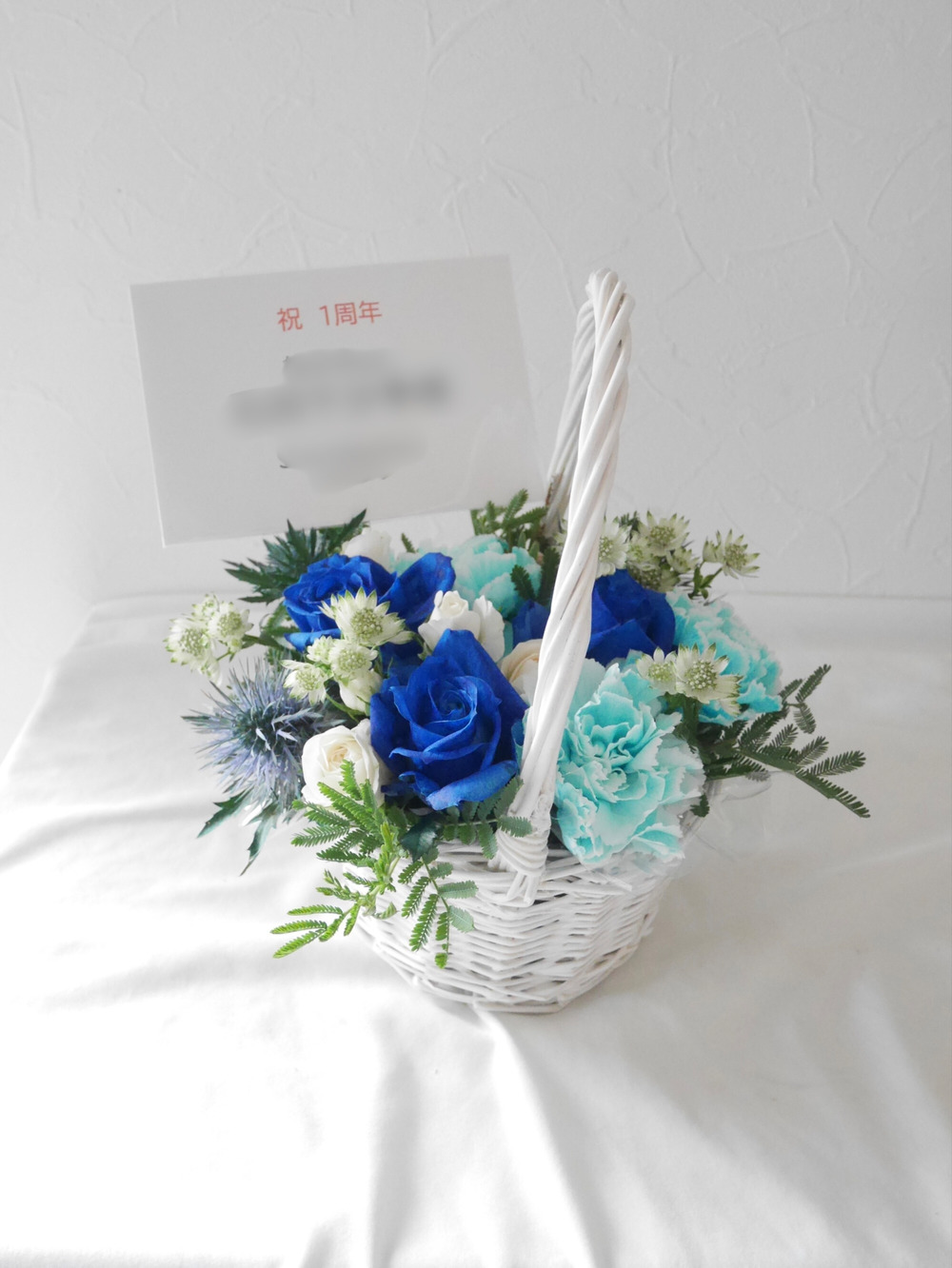 生花のバスケットアレンジ ブルー S