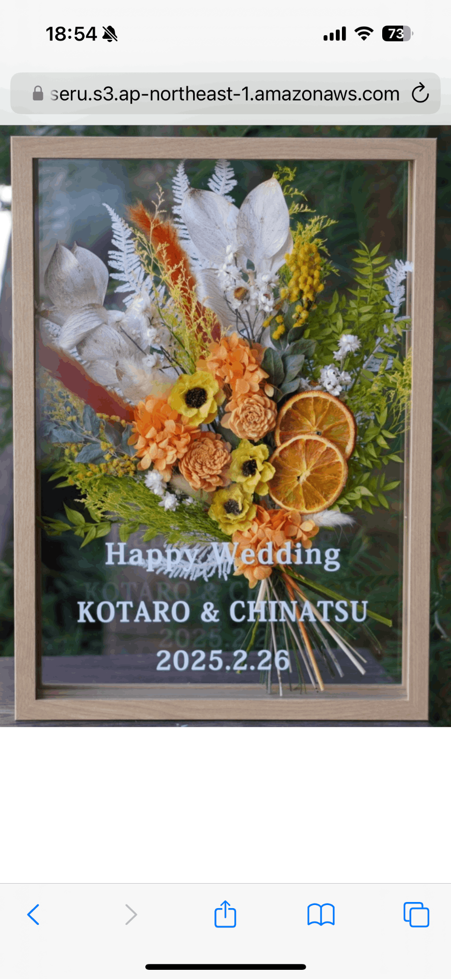 家族の金婚祝に注文させてもらいました。こちらの要望を聞いてくださり、返信もすぐにいただけたのでスムーズに注文できました。届いたお品も当初想像していたよりも遥かに豪華ですばらしかったです!家族も大喜びしてくれ、とても良い記念になりました。迅速、丁寧な対応ですばらしかったです。また利用したいと思います。