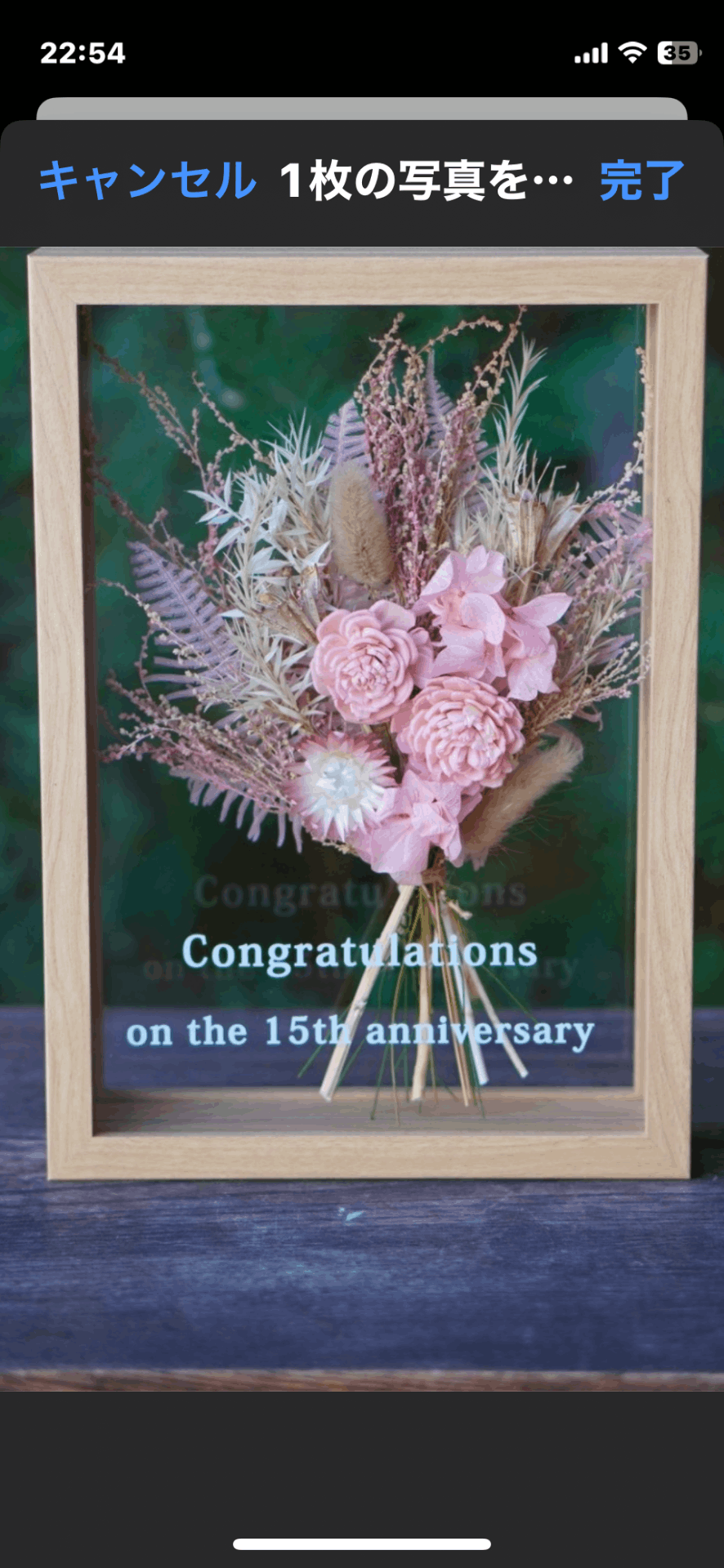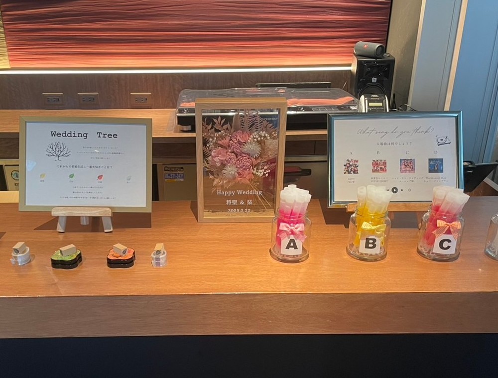 結婚式のウェルカムコーナーに飾ってくれました。それに、新婦さんが、すごく喜んだそうです。だから、満点です。