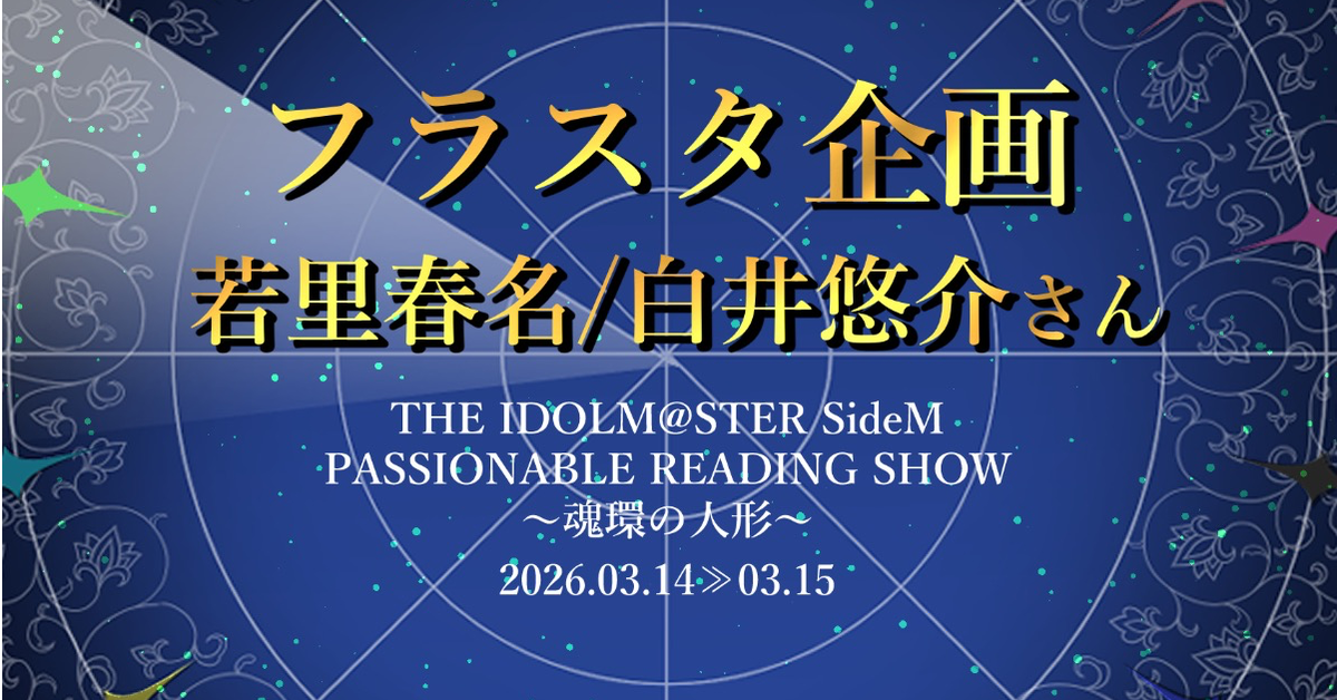 2026年3月14日(土)•15日(日)開催「THE IDOLM@STER SideM PASSIONABLE READING SHOW ~魂環の人形~」にて、ソナー役を演じる若里春名/白井悠介さんへフラワースタンドをお贈りする企画です。