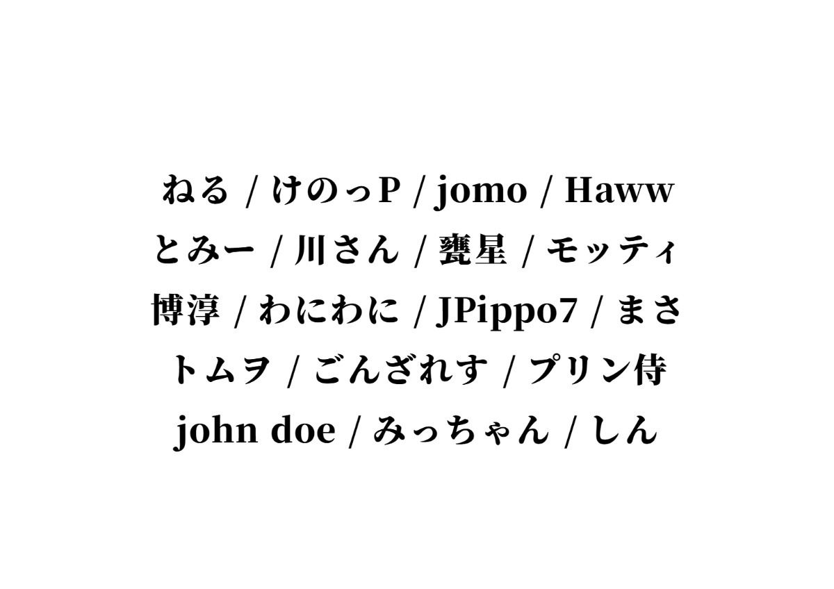 頂戴した表記名で記載されているかと思いますが、記載漏れや誤字などがありましたら企画者(BUTI)までDMにてご連絡ください。