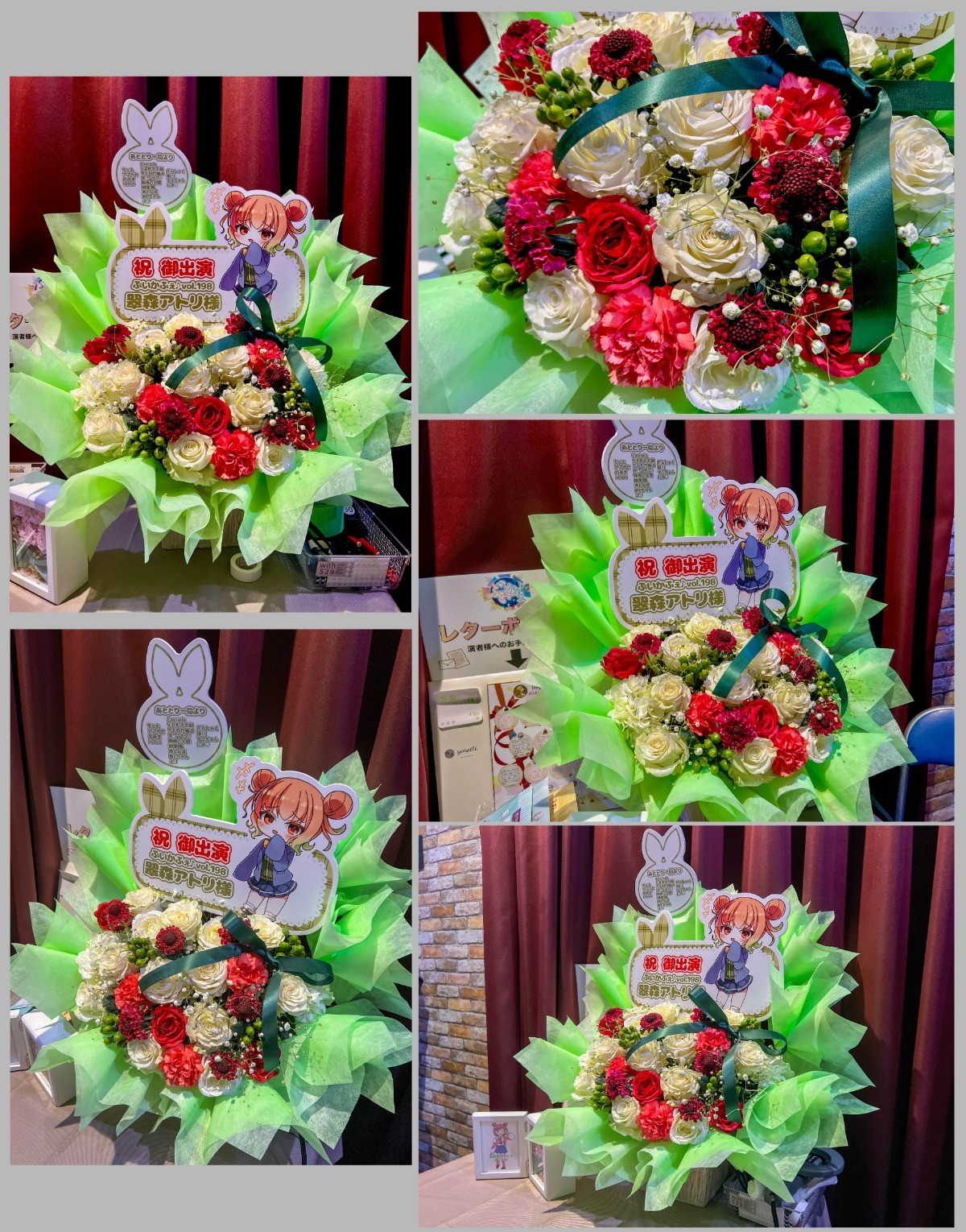 今まで通りであればライブ前日にお花完成の報告が届きますので、可能であればこちらに進捗追加いたします。