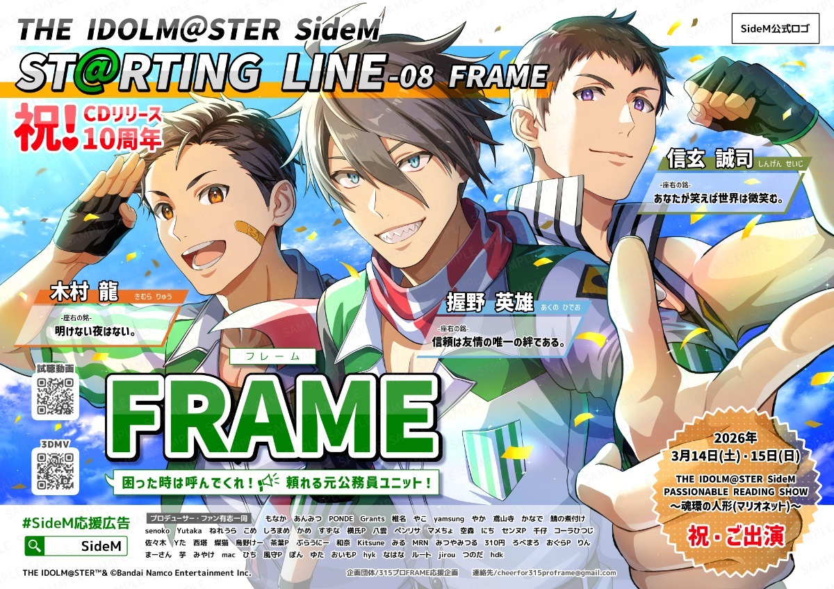 皆様の温かいご支援のおかげで、FRAMEの初ユニットCD「ST@RTING LINE-08 FRAME」の発売10周年をお祝いする広告を掲載することができました!
