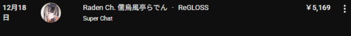 5,169円分らでんちゃんへ無言スパチャで送らせていただきました!