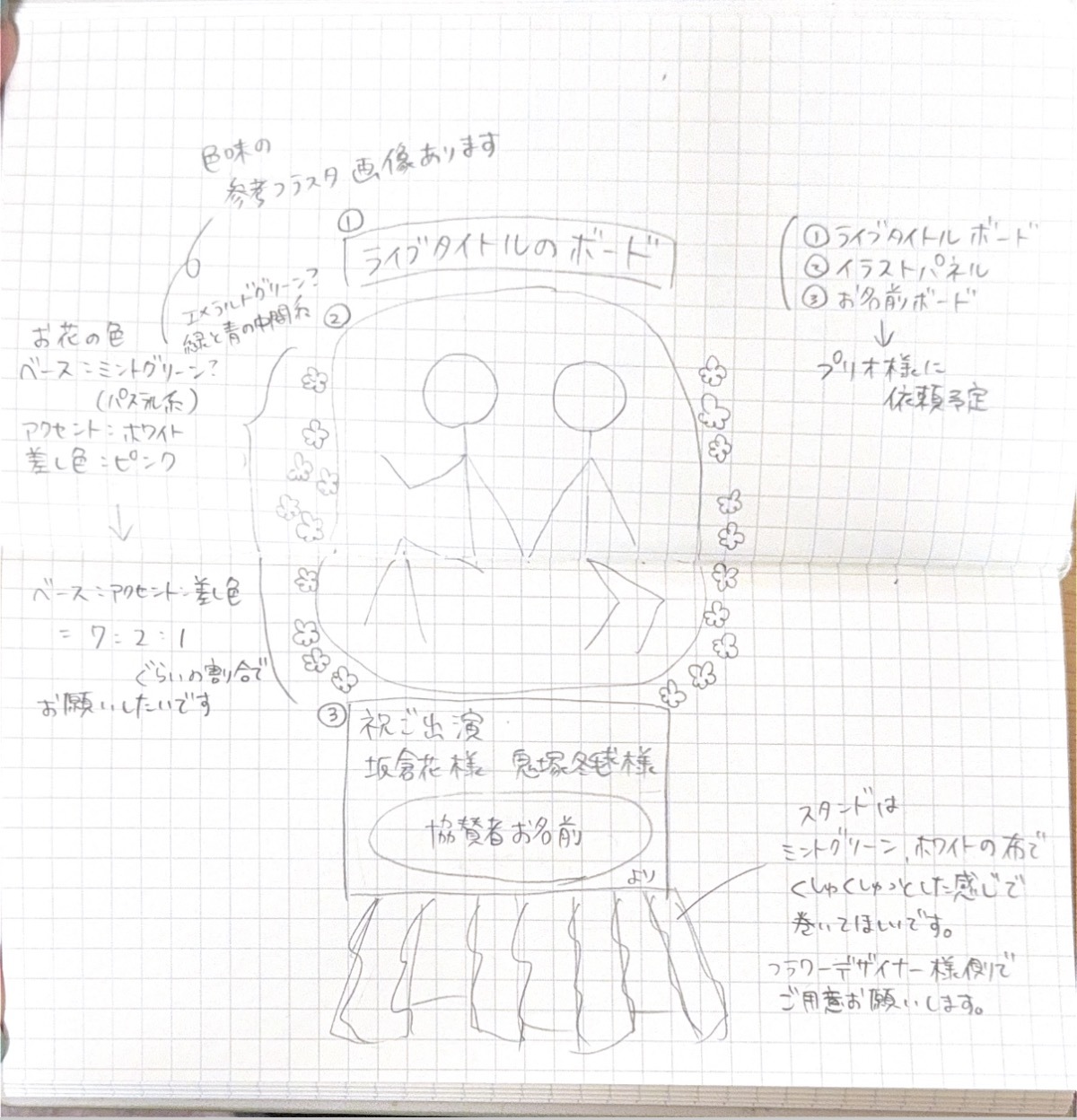 フラワーデザイナー様よりラフ画をいただきました!
