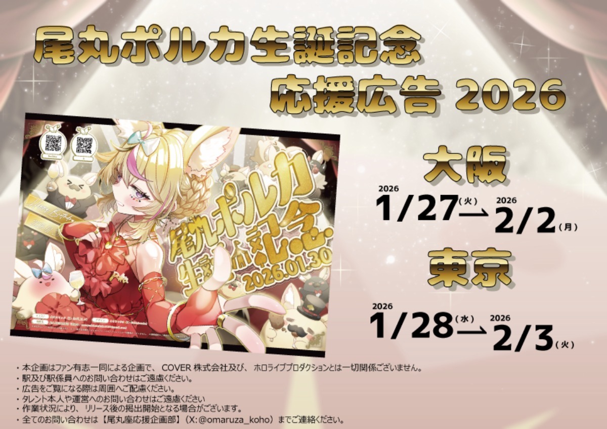 X上でお伝えさしていただいている通り、東京と大阪で画像の通り掲出されることになりました!