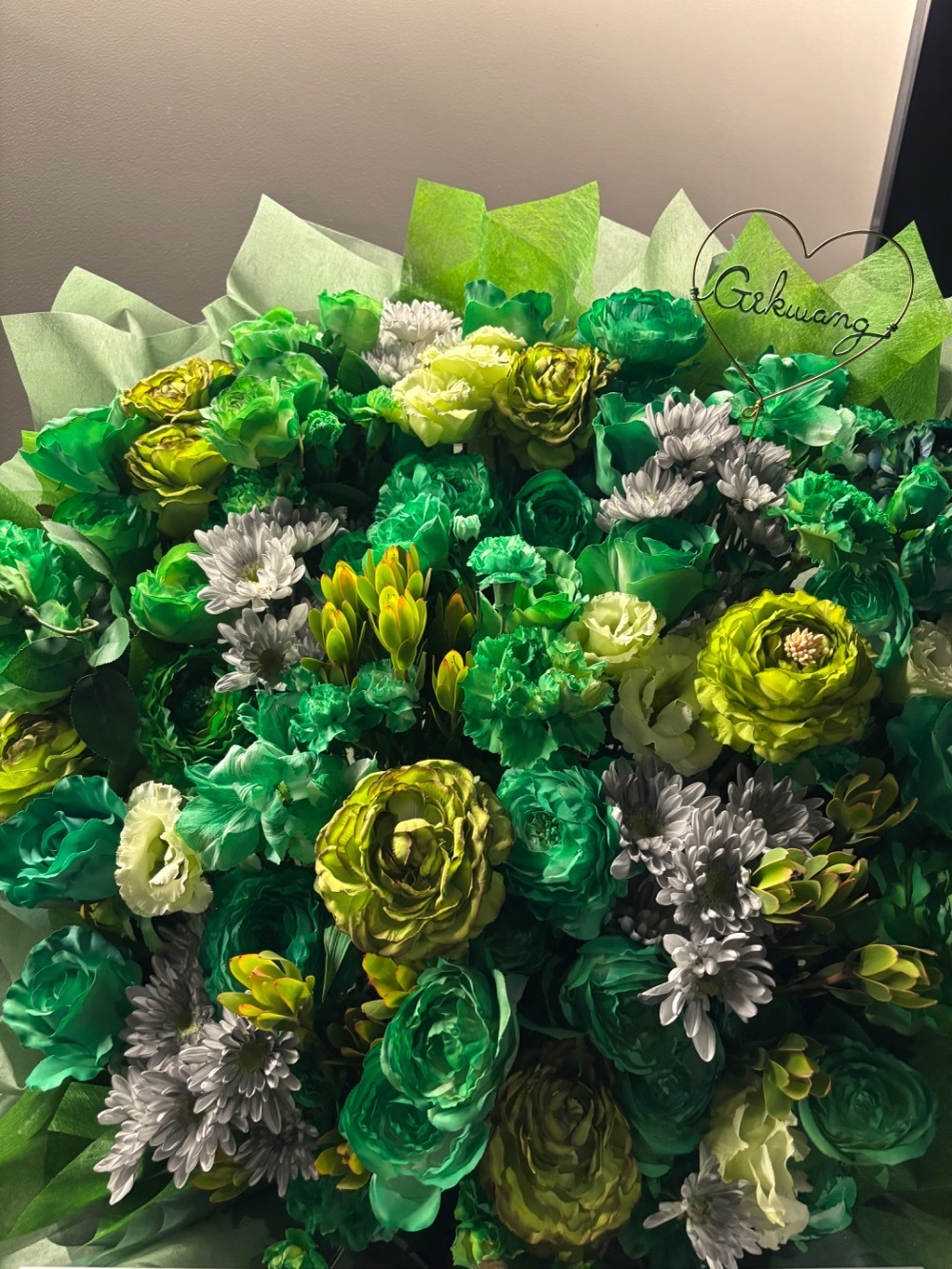メンバーカラーの緑でおまとめした華やかなご出演スタンド花