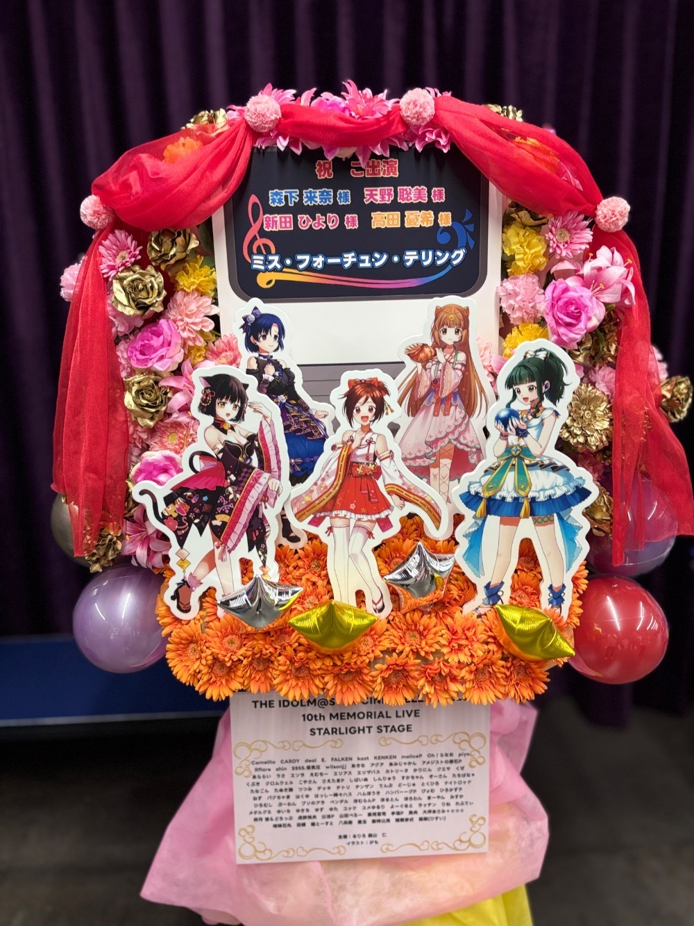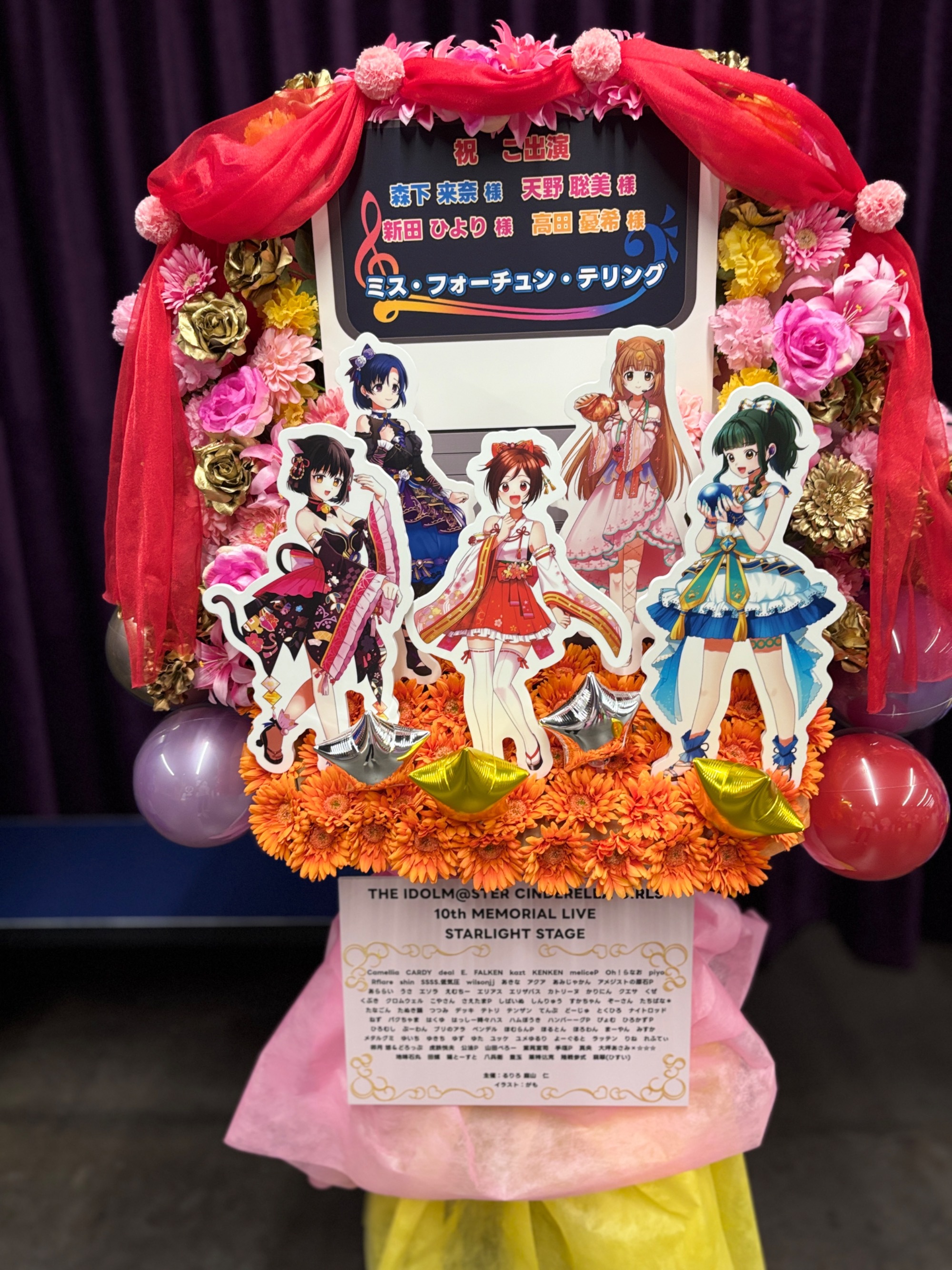 Kアリーナ横浜 公演 [THE IDOLM@STER CINDERELLA GIRLS 10th MEMORIAL LIVE STARLIGHT STAGE] ミス・フォーチュン・テリングの皆様、森下来奈様、天野聡美様、新田ひより様、高田憂希様 ご出演スタンド花
