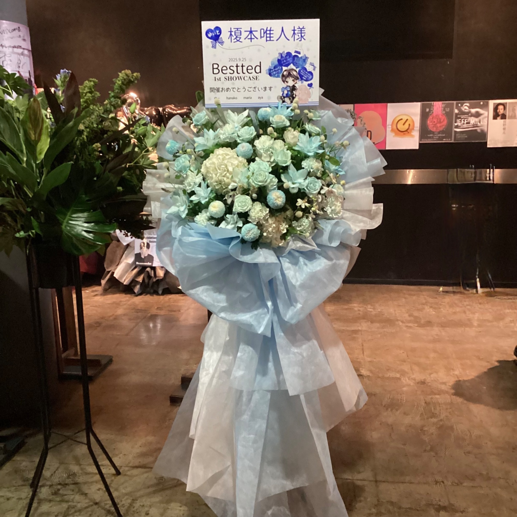 #20,000円-30,000円 #公演・出演祝い #フラワーデザイナー近藤 #ブルー #スタンド花 #推し花 #恵比寿LIQUIDROOM #榎本唯人 #オリジナル立て札