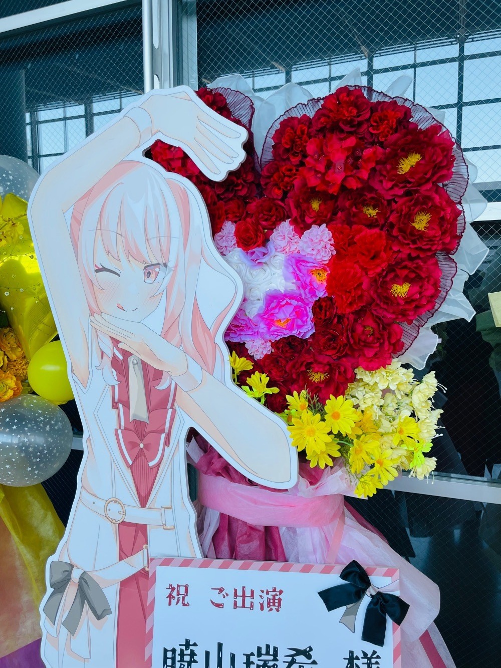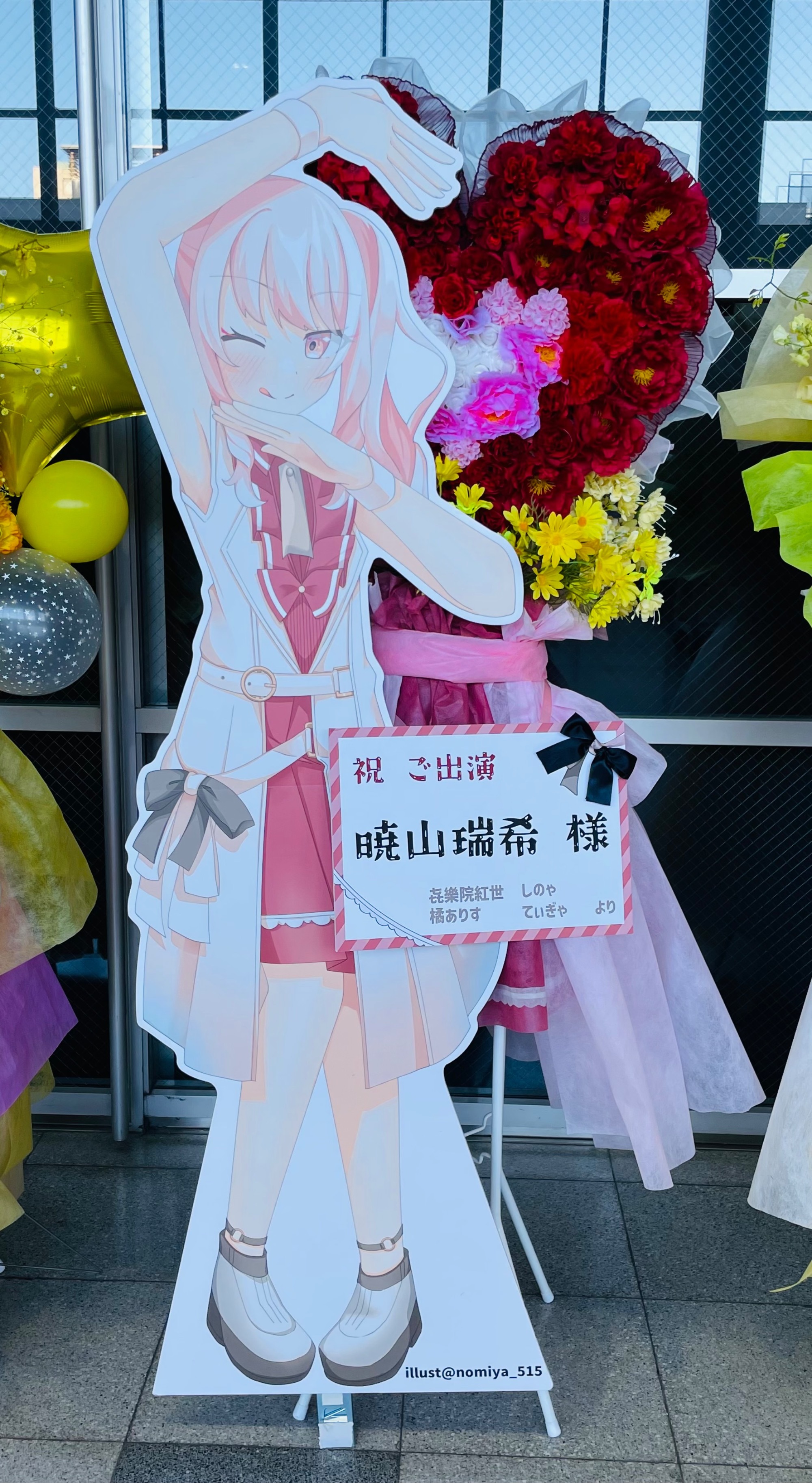 #70,000円 #公演・出演祝い #フラワーデザイナー大川 #赤 #スタンド花 #推し花 #幕張メッセ #暁山瑞希 #プロジェクトセカイ #オリジナル立て札 #等身大パネル #ハート型