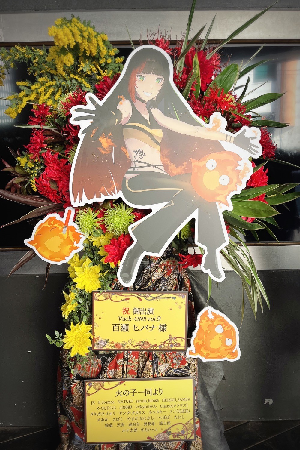 百瀬ヒバナのテーマであった『飛び火』をイメージして、爆発する火花のようにお花を配置していただくようにお願いいたしました。