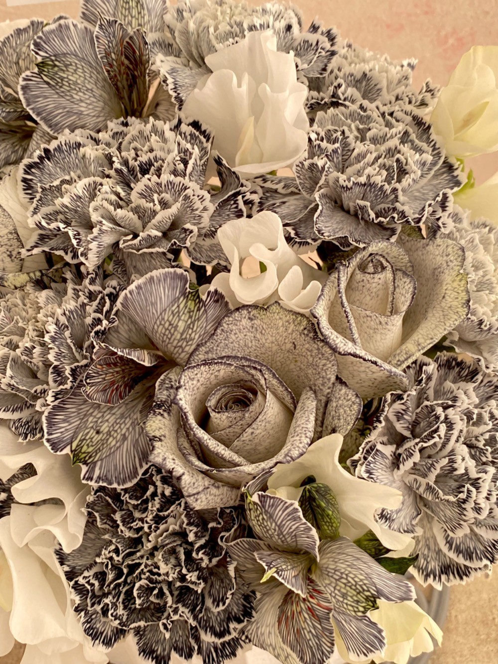 ありすちゃんは黒と白が良く似合うので、モノトーンのお花になるようお願いしました。