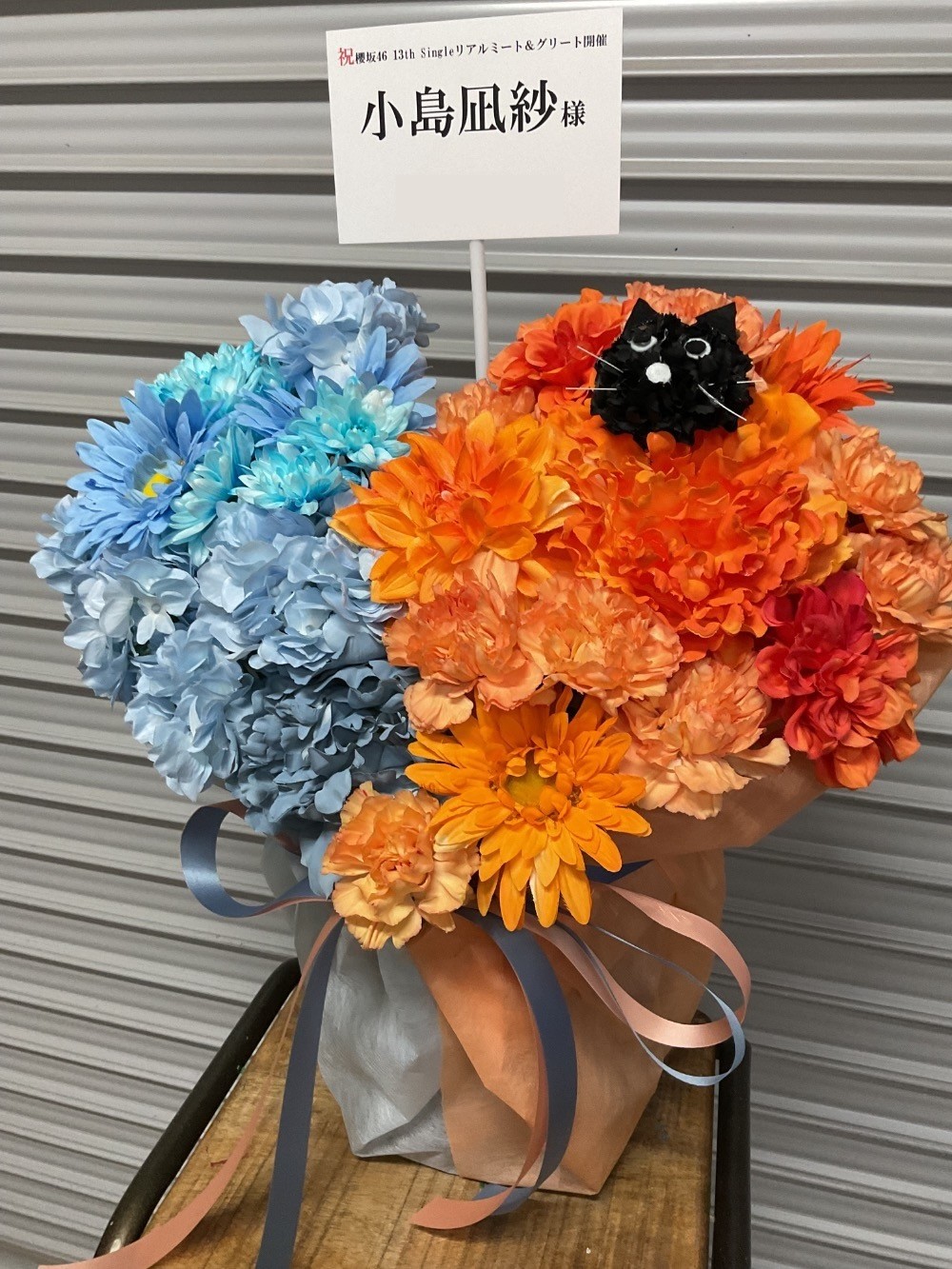 #16,000円 #握手会・オンラインお話し会 #フラワーデザイナー杉浦 #水色 #楽屋花 #推し花 #京都パルスプラザ #小島凪紗 #櫻坂46 #アイドル #リアルミート&グリート #ハート型 #ツートンカラー #アニマルアレンジ
